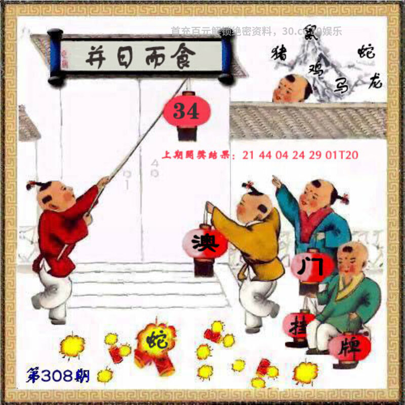 308期挂牌《并日而食》 解:意指因贫困而两天只能吃一天的食物,形容生活极度穷困 解:并日解日肖兔龙蛇马羊猴,挂:34爆:蛇 七肖:猴蛇兔龙马羊鸡 |